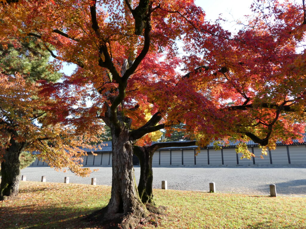 朝日の中で照らされた紅葉がとっても美しかったです♬ 京都御苑 へ戻る