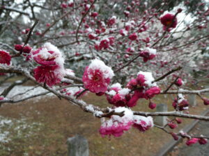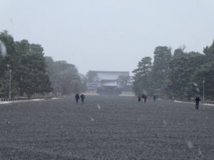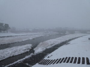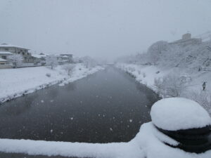 Aujourd’hui, dans la ville de Kyoto, il neige beaucoup ! C’est la plus grande neige cet hiver ! Il fait froid aussi !