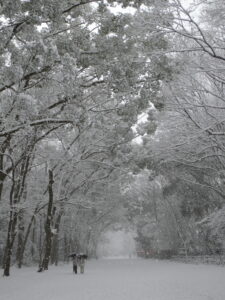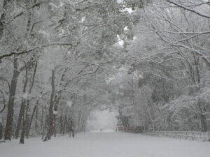 糺の森の馬場は木が覆っていてアーチ状になっています。雪が積もると雪のドームが現れます。僕はこの雪のドームが好きです♪大雪の時だけに現れる自然の美!