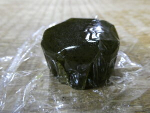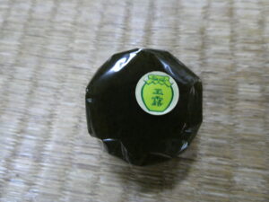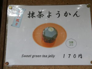 Sur le chemin de pèlerinage, il y a des petits sanctuaires shintos. Et devant un sanctuaire, il y a un magasin. Il propose un gâteau qui s’appelle ” Gyokuro Yokan ” (gelée sucrée de matcha (thé japonais)). Il coûte 170 yens. Et c’était très bon ! En plus, ce magasin, il nous donnerait de l’énergie pour ce pèlerinage de 4 km !