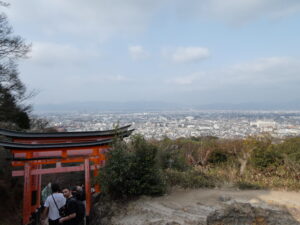 伏見稲荷大社は「千本鳥居」で有名です。稲荷山(標高233m)の山頂を通る巡礼路「お山めぐり」は約4㎞あります。そこに千本ならず、4000~5000の人が通れる鳥居が連なり、ところどころに祀られる小さな鳥居を合わせると約10000本の鳥居があるそうです。