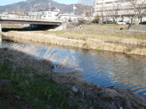 Hier soir, je suis tombé sur un beau phénomène naturel sur la rivière Takano. La surface d’eau scintillait comme du arc-en-ciel ! C’était vraiment superbe. J’ai trouvé que l’on dirait un miracle. Ce phénomène n’a duré qu’un moment. Mais au début j’ai pensé que le feu de signalisation qui se situe près de là s’est reflété sur l’eau simplement. Mais, quand je me suis déplacé, la couleur de la lumière sur l’eau tout de suite a changé. Si le feu n’a pas changé lors de ma déplacement, ce n’aurait pas été que la lumière sur l’eau était le reflet du feu…