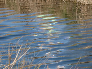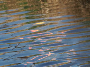昨日の夕方、高野川で不思議な光を見ました。川面にキラキラとカラフルな色の光が揺らめいていました。ちょうど去年の今頃も同じような光を同じところで見ました。