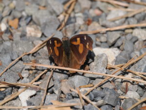 テングチョウは京都御苑でよく見かけます。京都御苑だけでなく、平地の雑木林に住む普通に見られる蝶です。食草はエノキです。他のタテハチョウの仲間もエノキが好きですね。エノキといってもキノコのエノキではなく、木のエノキの方です。春先、成虫で越冬した個体が飛び回ります。日向で翅を広げて日向ぼっこしている姿を見かけます。