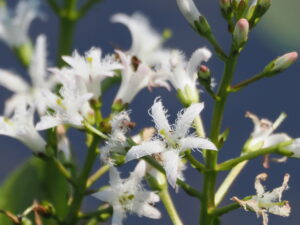 先日、京都市北部にある深泥池(みどろがいけ/みぞろがいけ)に行ってみました。ミツガシワ(ミツガシワ科)の白い花が咲き始めていました。ミツガシワは一属一種の植物です。