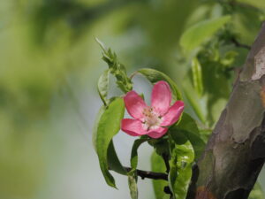 ちょっと大きめで淡いピンクのお花。きれいなお花でした。そしてちょっと華奢ではかない感じのお花だなって僕は思いました。花は木にまばらについていました。