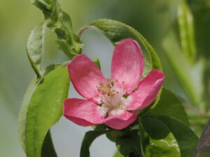 En ce moment, le cognassier de Chine (en japonais ” Karin / カリン “) est en floraison. Quelle belle fleur délicate !!