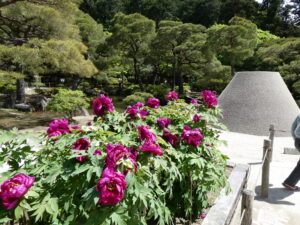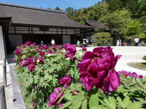 先日、ガイドでフランス人のご家族を銀閣寺にお連れしました。境内には見事な牡丹が咲いていました。満開でした!超感動しました!!
